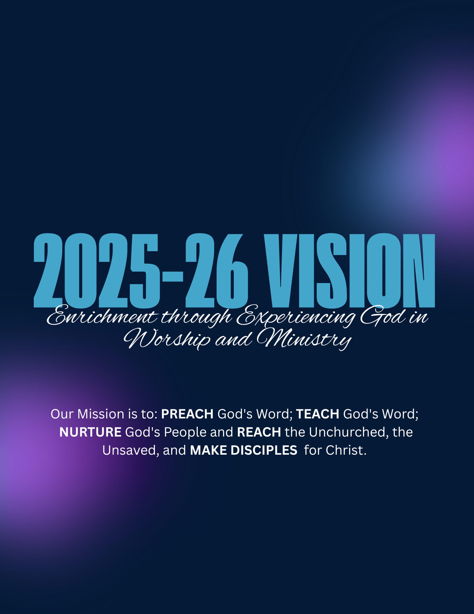 PREACH God's Word...TEACH God's Word; NURTURE God's People and REACH the Unchurched and Unsaved for Christ.